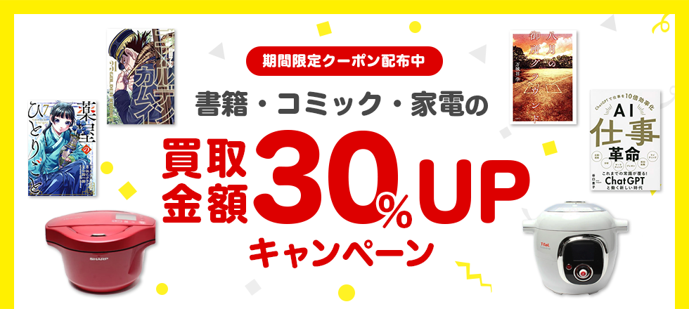 書籍:10点以上、ゲームソフト・ブルーレイ・DVD・CD:3点以上         (ただし、1点は買取価格が1000円以上)書籍:30点以上、ゲームソフト・ブルーレイ・DVD・CD:3点以上